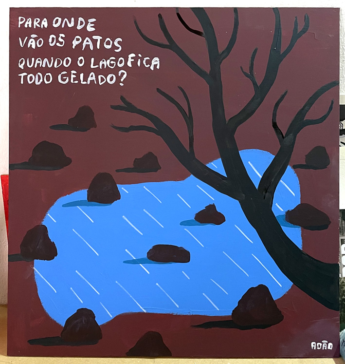 Patos no lago gelado R$ 2.112,50 Acrílica sobre MDF 38 x 41cm 2024 Simulação de frete Patos no lago gelado quantidade Adicionar ao carrinho Descrição Descrição “Para onde vão os patos quando o lago fica todo gelado?” Acrílica sobre MDF 38 x 41cm 2024 *A obra é vendida sem moldura. **Frete para todo o Brasil incluído. Produtos relacionados Soho R$ 9.375,00 Adicionar ao carrinho Mulher Loira R$ 1.687,50 Adicionar ao carrinho Pica-Pau R$ 1.812,50 Adicionar ao carrinho Fase Cinza 4 R$ 1.562,50 Adicionar ao carrinho