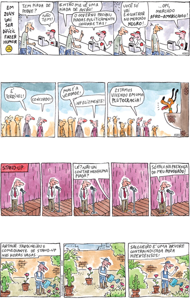 As tiras com personagens mais conhecidos — como Aline, Rocky & Hudson, La vie en rose, Chato de Galochas, Fossinha e Troncho —, assim como as que tratam de temas como amor, relacionamento e psicanálise, ficaram de fora desta seleção. Essas, junto com alguns cartuns, já têm uma coletânea própria ou terão em breve.