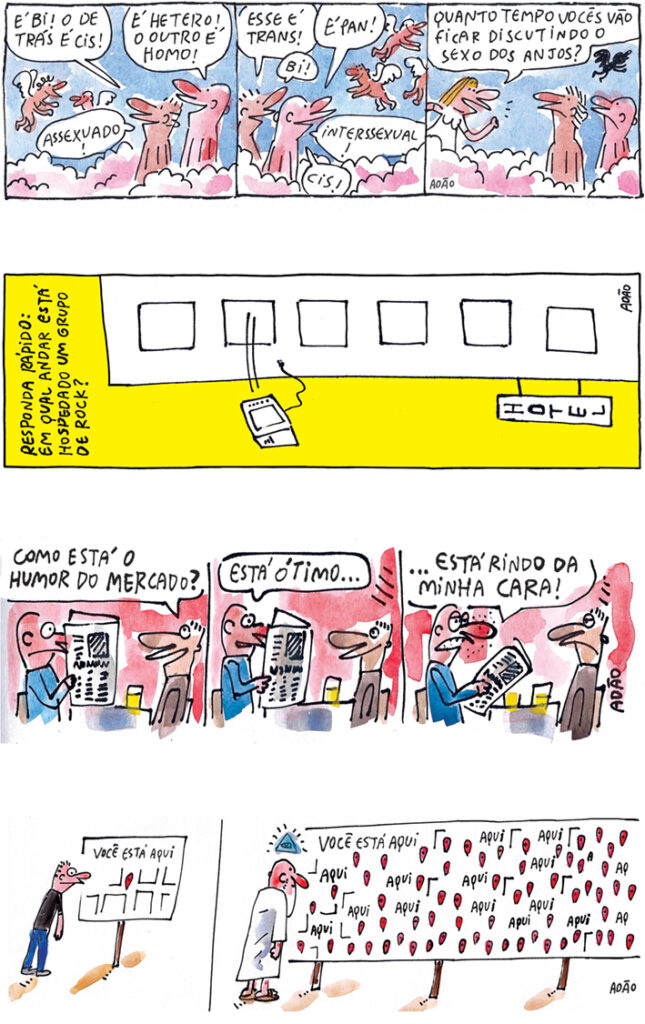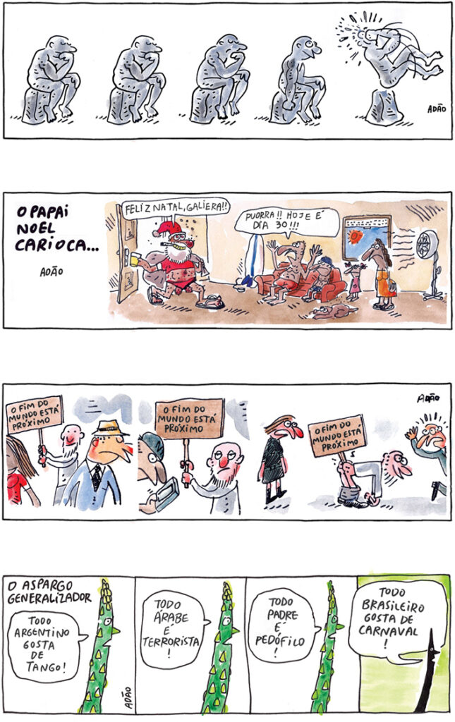 Também deixei de fora as tiras já publicadas em outros livros de cartuns, para não torturar o leitor com repetições e sensações de déjà-vu.
